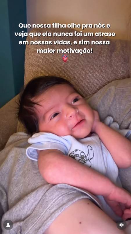 No registro publicado, a pequena aparece deitada nos braços da mãe. Esbanjando fofura, a bebê foi filmada sorrindo enquanto era acalentada por Fernanda. "Primeiro dia do ano. Primeira publicação. Primeiro sorriso revelado. Você chegou pra transbordar nosso amor! Nossa maior motivação", declarou Guimê na legenda.