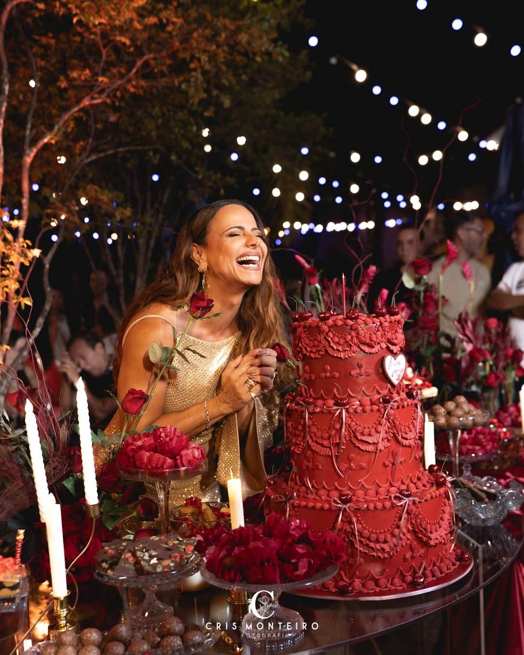 A festa de 51 anos de Viviane Araujo teve uma decoração exuberante. A famosa escolheu a cor vermelha para o momento e bolo e docinhos foram destaque no evento.