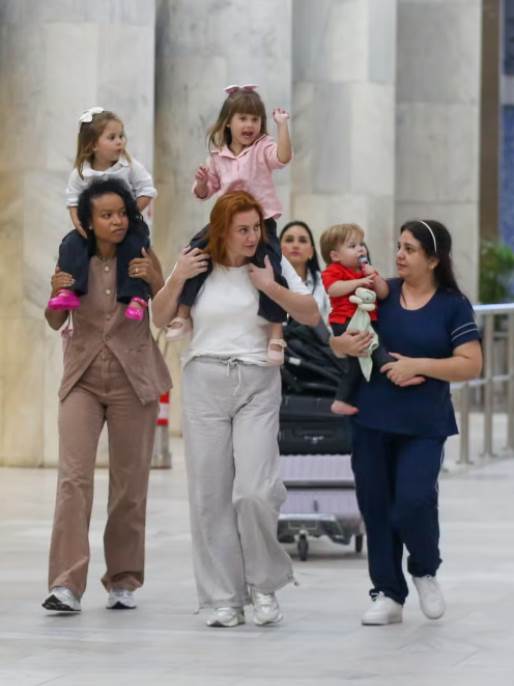 Maria Alice, de 4 anos, Maria Flor, de 3 anos, e José Leonardo, de 1 ano, filhos do ex-casal Virginia Fonseca, de 26, e Zé Felipe, de 27, roubaram a cena ao desembarcarem em aeroporto no Rio de Janeiro. Acompanhados de suas babás, os três foram fotografados no local. A primogênita sorriu e acenou para o paparazzo de plantão.