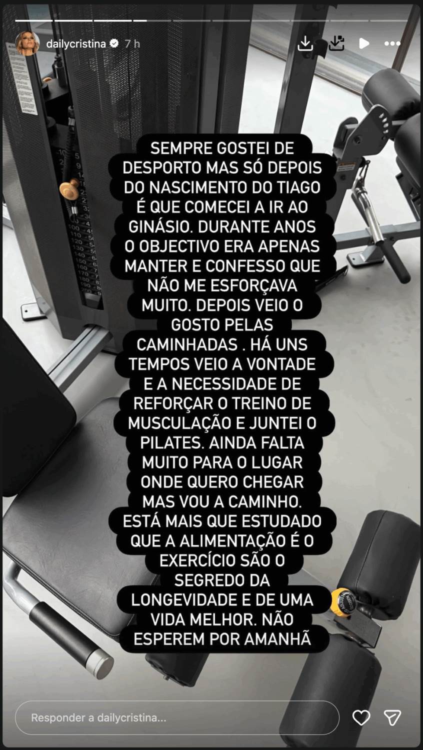 Há pouco mais de uma semana, precisamente em 9 de dezembro de 2025, Cristina surpreendeu seus fãs com uma reflexão sincera sobre a importância de ouvir o corpo e adaptar suas escolhas diárias às suas necessidades individuais. "Durante anos, o objetivo era apenas manter, e confesso que não me esforçava muito", admitiu a apresentadora, que agora abraça caminhadas regulares e sessões de musculação combinadas com Pilates.