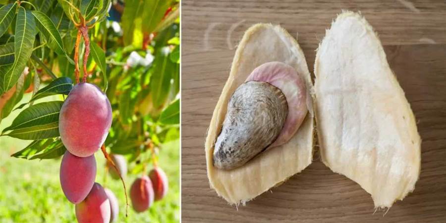 O processo começa com a escolha de uma manga bem madura. Depois de saborear a fruta, é hora de aproveitar o caroço.