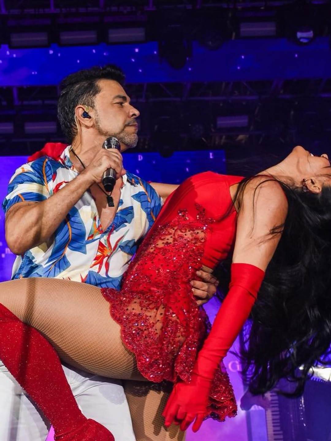 Graciele Lacerda subiu no palco três noites para dançar com Zezé Di Camargo a música. A apresentação dela gerou vários comentários.