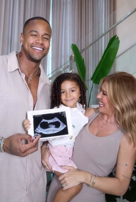 Na publicação, eles compartilharam um vídeo em que a filha do casal mostra o ultrassom. Em seguida, faz carinho na barriga da mãe. "Promovida a irmã mais velha! Agora somos 4, minha gente! ESTAMOS TÃO FELIZESSS!!!", escreveram na legenda.