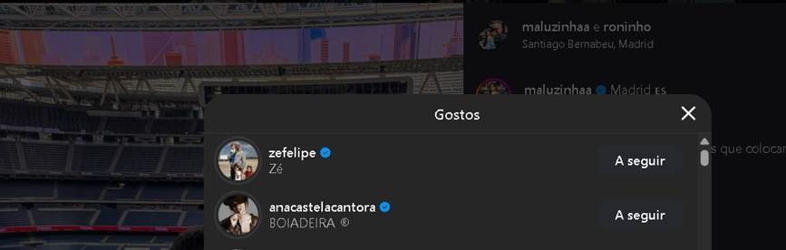 Após a influenciadora digital Virginia Fonseca visitar o estádio Santiago Bernabéu, casa do Real Madrid na Espanha, onde joga o atacante Vinícius Júnior, um casal chamou atenção no mesmo local. Os influenciadores Roninho e Maluzinha marcaram presença usando camisas personalizadas do Real Madrid com os nomes de Zé Felipe e Boiadeira, apelido da cantora Ana Castela.