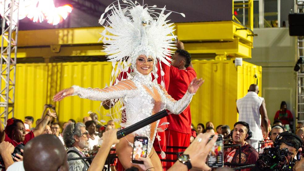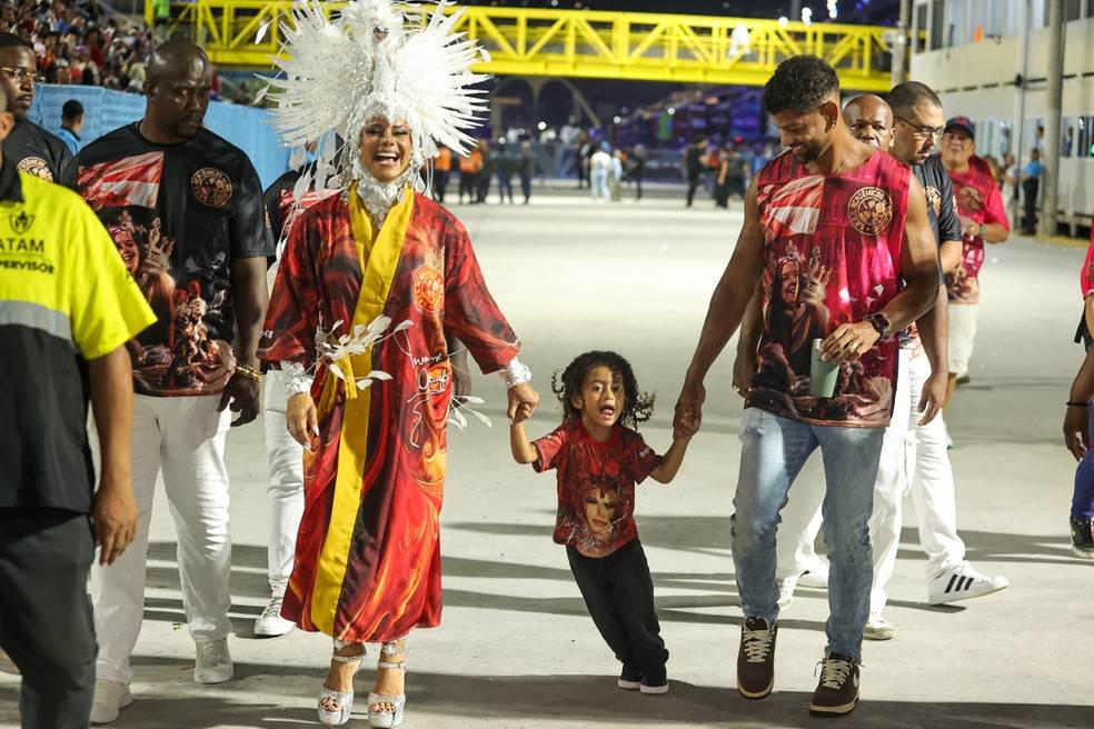 Viviane Araujo chegou na Marquês da Sapucaí na noite deste sábado (31) deslumbrante em um figurino que representa um cisne, mas quem chamou a atenção foi o filho, Joaquim, de apenas três anos. De mãos dadas com a Rainha de Bateria e com o pai, Guilherme Militão, ele estava empolgadíssimo para assistir ao ensaio técnico do Salgueiro.