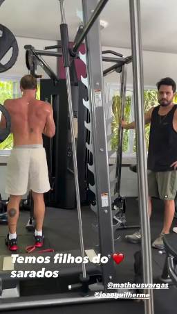 No segundo vídeo, a jornalista gravou um pouco do treino de costas de João, que estava sem camisa, revelando o seu físico sarado.