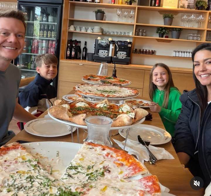 Na publicação, Thais contou que a família costuma repetir o mesmo programa há exatamente uma década: comer pizza no mesmo lugar e com os mesmos sabores.