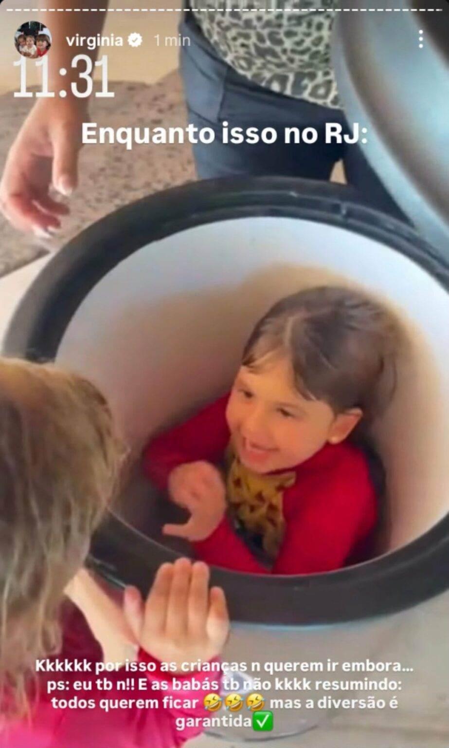 A influenciadora Virginia Fonseca está no Rio de Janeiro com as filhas, Maria Alice e Maria Flor, hospedada na casa de Vini Jr. na capital fluminense. Nesta terça-feira (2), ela contou nas redes sociais que ninguém da família – nem mesmo as babás das crianças – está com vontade de deixar o local.