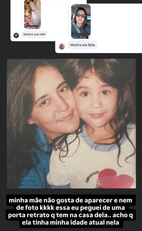 "Minha mãe não gosta de aparecer e nem de foto. Essa eu peguei de um porta-retrato que tem na casa dela. Acho que ela tinha minha idade atual nela", escreveu Monyque Isabella.