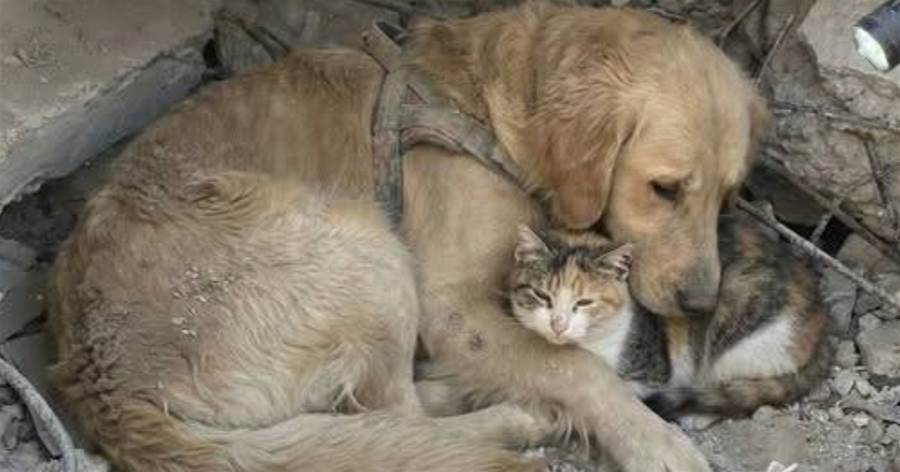 E o mais impressionante: o Golden Retriever, que mais tarde seria chamado de “Kepler”, não permitiu que ninguém tocasse nele até que a gata fosse retirada primeiro da pilha de destroços. “Ele era tão zeloso.