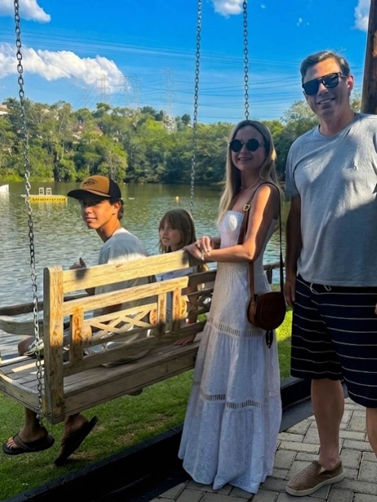 A apresentadora Eliana chamou a atenção ao compartilhar fotos raras de sua família neste sábado, 06. Aproveitando a folga do final de semana, a loira apareceu com o marido, o diretor de TV Adriano Ricco, e os dois filhos, Arthur, de 13 anos, e Manuela, de 7.