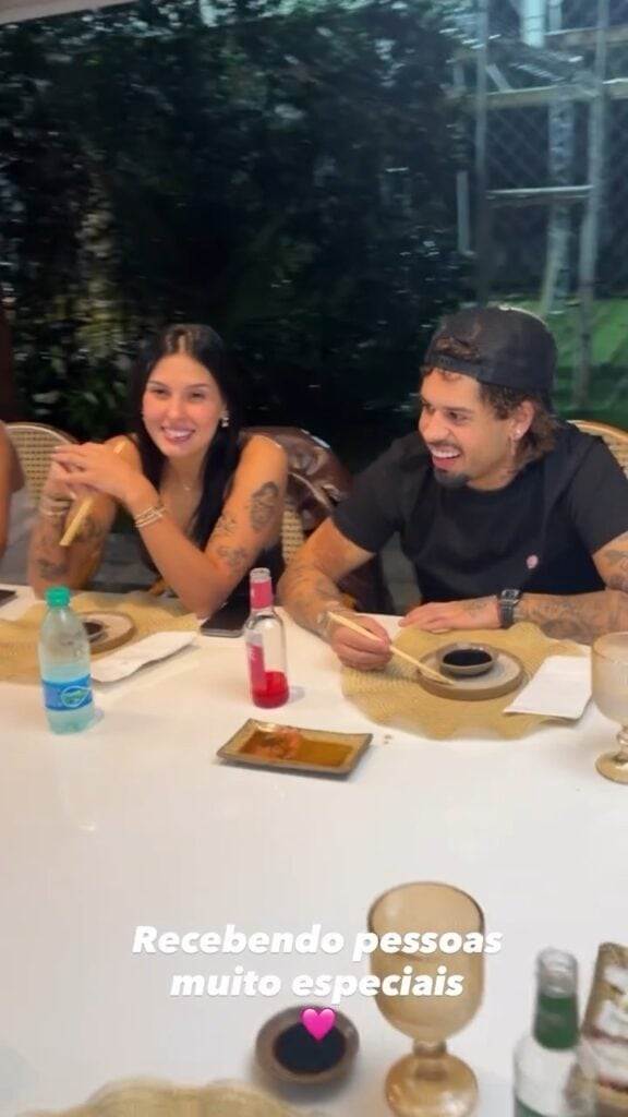 Zé Felipe, de 27 anos, e Ana Castela, de 22 anos, promoveram o primeiro encontro entre as famílias na noite desta segunda-feira (22). O jantar aconteceu na mansão do cantor Leonardo, em Goiânia. O momento foi registrado por Poliana Rocha, mãe de Zé Felipe, que compartilhou imagens nas redes sociais. “Recebendo pessoas muito especiais”, escreveu ela.