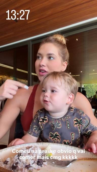 Enquanto comia mais uma refeição de sua dieta para o Carnaval, a famosa mostrou que o menino queria comer sua comida mesmo depois de ter se alimentado na praia e acabou chamando sua sogra pelo nome carinhoso, demonstrando consideração por Fernanda Cristina.