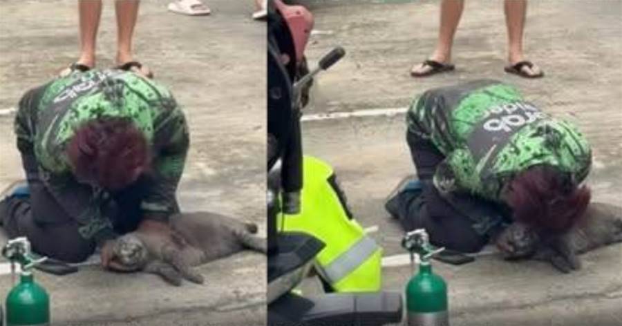 Munido apenas de sua coragem e seu capacete de trabalho, o entregador entrou no prédio tomado pela fumaça. Cada segundo parecia uma eternidade enquanto ele percorria os corredores em busca do animal.