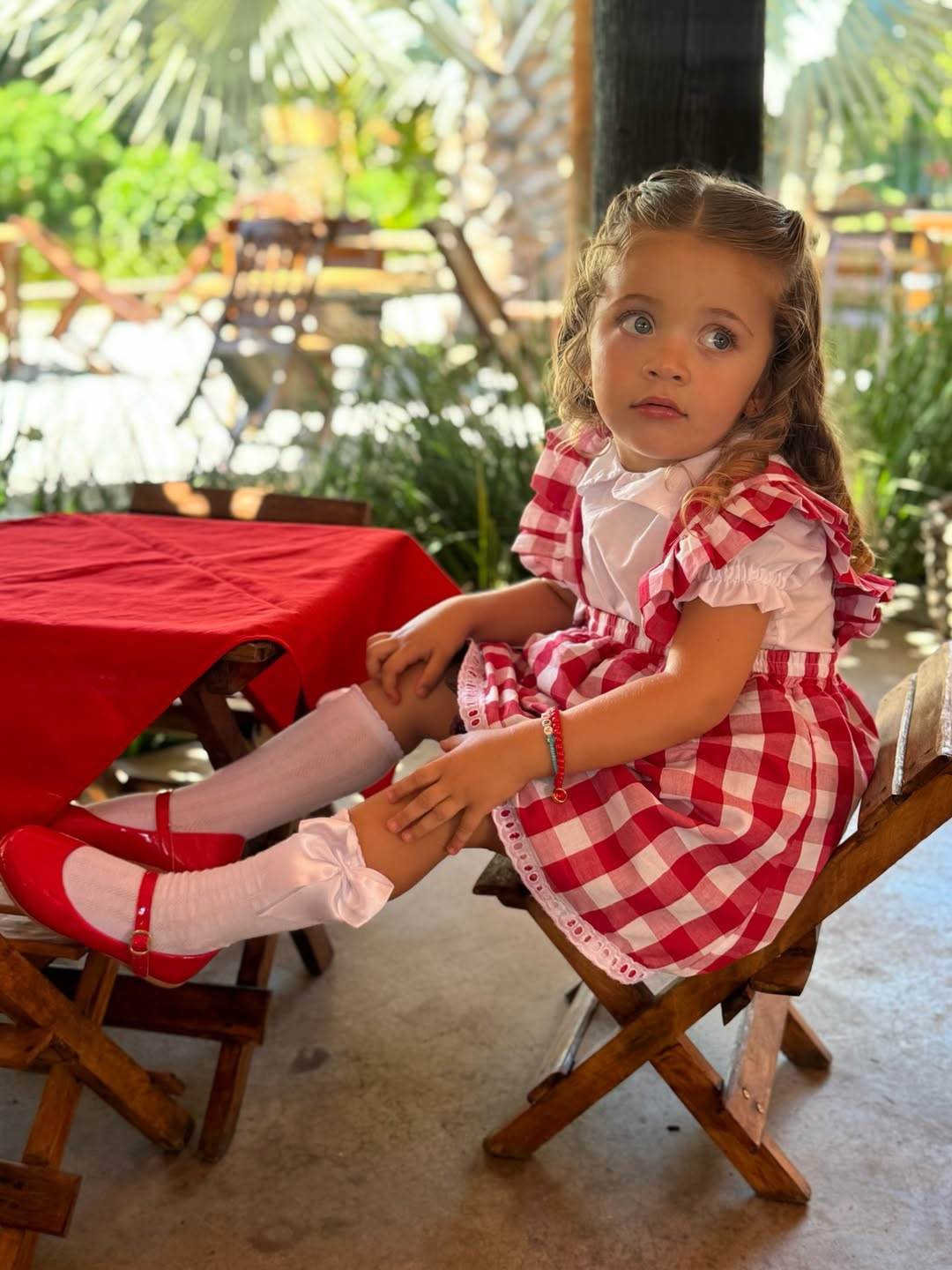 Em seu perfil oficial, a modelo compartilhou fotos e um vídeo com os registros do evento, que teve como tema 'Fazendinha da Aurora'. A aniversariante esbanjou fofura ao surgir usando um vestido xadrez, nas cores branco e vermelho, além de meias e sapato.