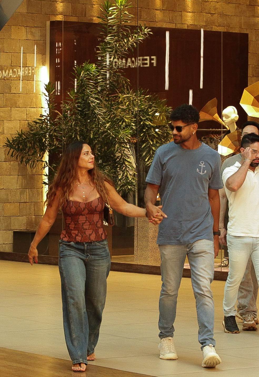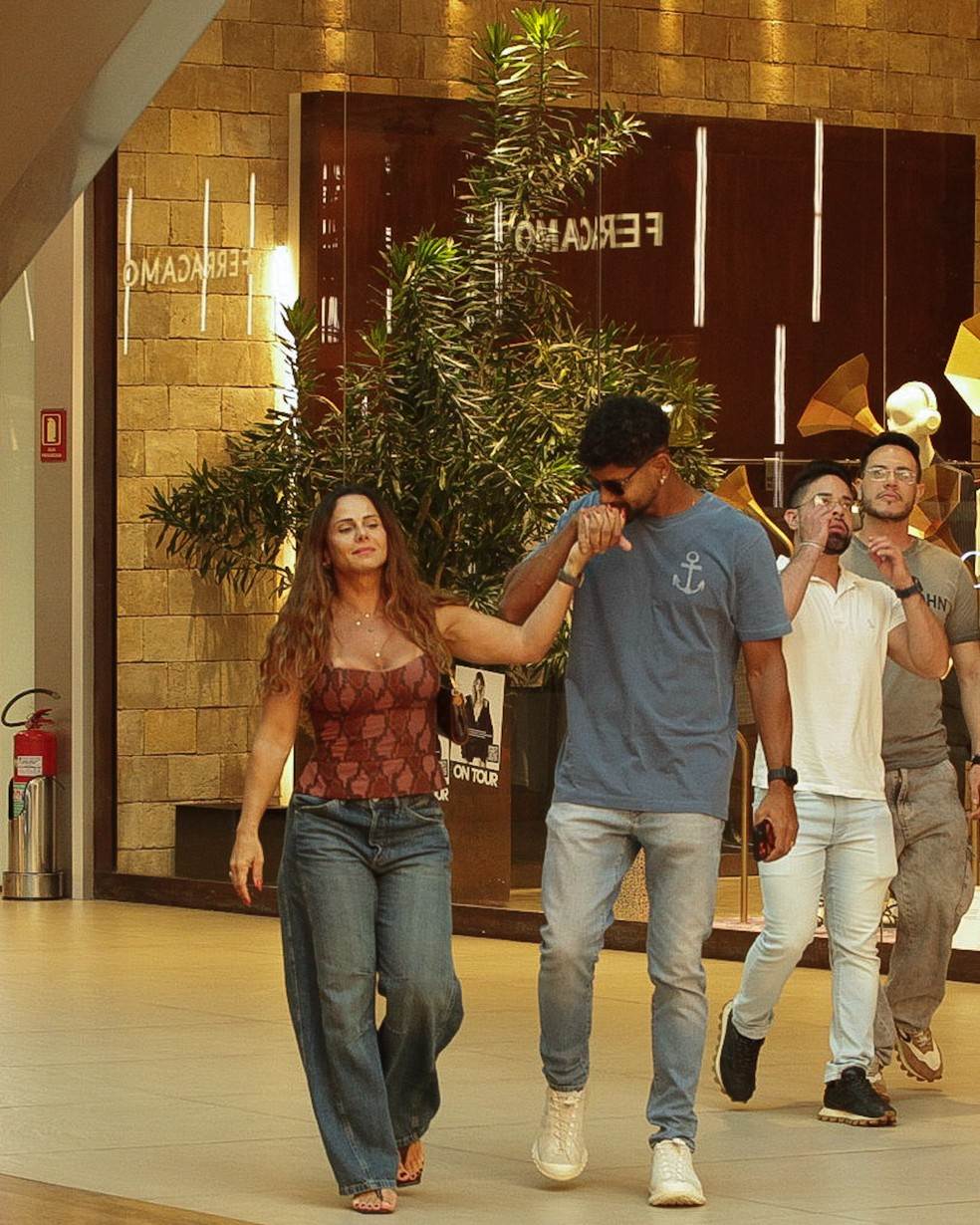 O casal chegou a trocar carinhos e andar de mãos dadas pelo shopping. Viviane beijou a mão de Guilherme, que fez o mesmo, mostrando o clima de romance do casal.