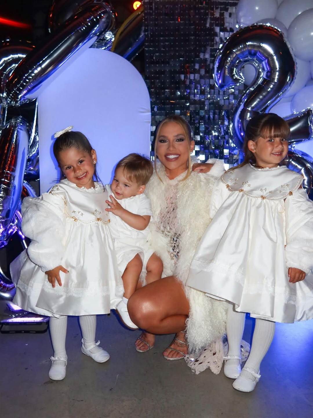 , 25, que mora lá. Ela mostrou o visual escolhido para a festa e alguns registros dos filhos durante o jantar na véspera. "Vem 2026, estamos prontos para você! (...) Que 2026 nos traga muitas bênçãos, saúde, amor, sabedoria e força para enfrentarmos os desafios, conquistas e paz!", comemorou na legenda.