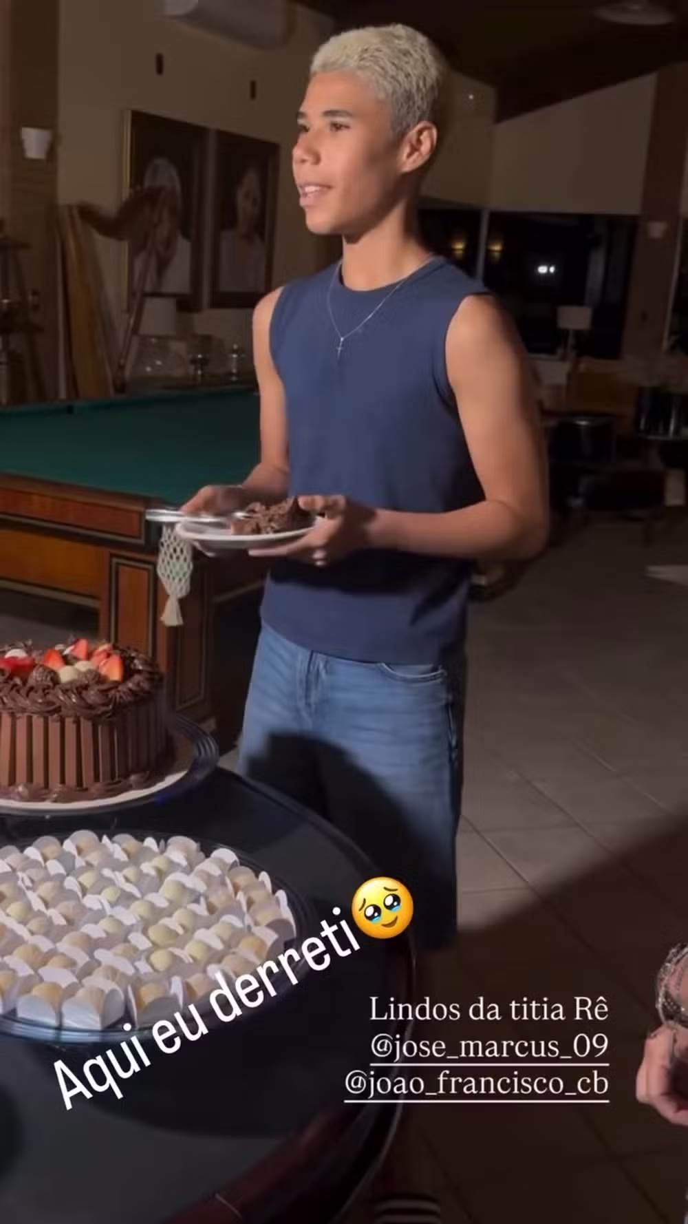 Após cantar os parabéns, o jovem se declarou para o irmão, João Francisco, de 11 anos. "Pessoa super amorosa, às vezes até demais. Abraça muito, sempre quer estar perto dos outros. Pessoa de luz. Começa com J e termina com oão", brincou ele ao oferecer o bolo. Em seguida, os irmãos se abraçaram. E o momento emocionou Wanessa, que confessou: "Eu derreti", disse ela.