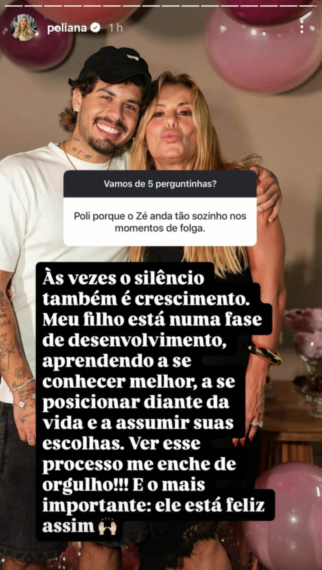 Zé Felipe, cantor sertanejo e herdeiro de uma das famílias mais icônicas do Brasil, voltou a ser alvo das redes sociais após aparecer sozinho em suas folgas, chamando atenção de fãs e seguidores. Recentemente, Poliana Rocha, mãe do artista e esposa do renomado cantor Leonardo, decidiu abordar o assunto, afastando os rumores e mostrando que, na realidade, o momento de “solidão” é uma fase de crescimento para o jovem cantor.