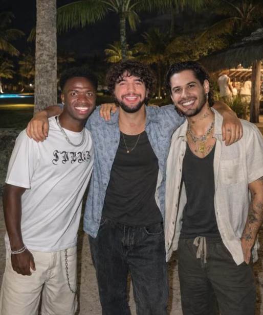 Nattan, de 27 anos, decidiu entrar de vez na brincadeira após a repercussão de um post ao lado de Vini Jr., de 25 anos, ao som de Zé Felipe, de 27. Neste sábado (27), o cantor publicou uma montagem feita por inteligência artificial reunindo o craque do Real Madrid e o filho de Leonardo no mesmo clique, e a internet surtou novamente.