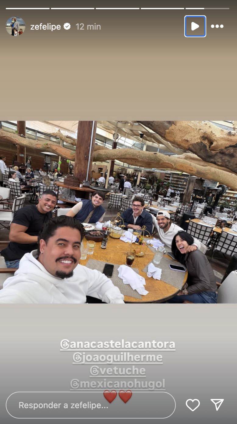 Zé Felipe curtiu almoço com Ana Castela e o irmão João GuilhermeNesta terça-feira, 7, o artista compartilhou nas redes sociais um almoço especial ao lado da cantora Ana Castela, do ator João Guilherme e de amigos em um restaurante.