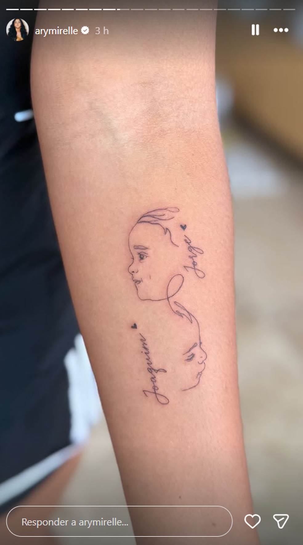 Ary e João são pais de Jorge e Joaquim e, para eternizar o momento, a influenciadora decidiu tatuar o rostinho dos dois pequenos no braço. "Vocês são tudo pra mim nessa vida, meus filhos, meus melhores amigos. Que bom que Deus me deu vocês! Que Deus me ajude a criar dois homens bondosos e amorosos, que vocês dois sigam o caminho do senhor, do bem, do amor.