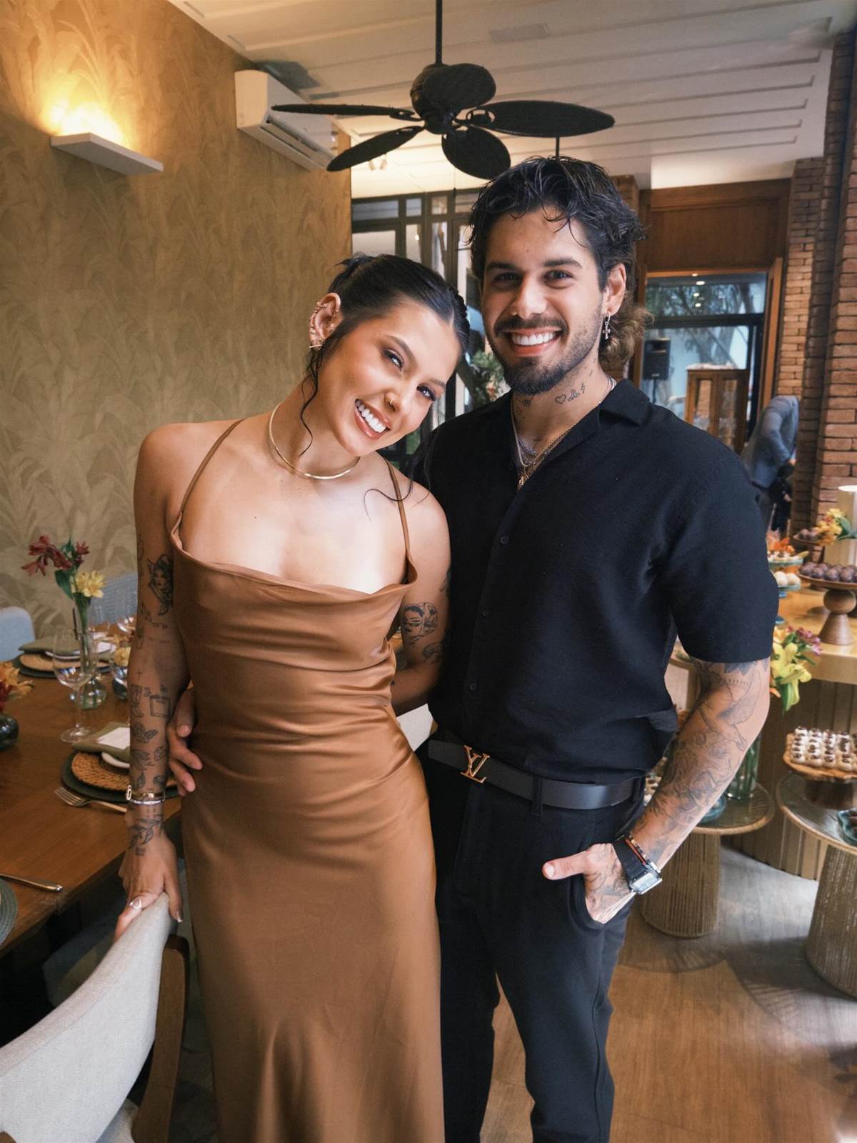 Assim que Ana Castela apareceu com as flores nas mãos, Zé Felipe correu em direção à namorada, comemorou o momento e deu um beijo na cantora, sob aplausos e gritos dos convidados.