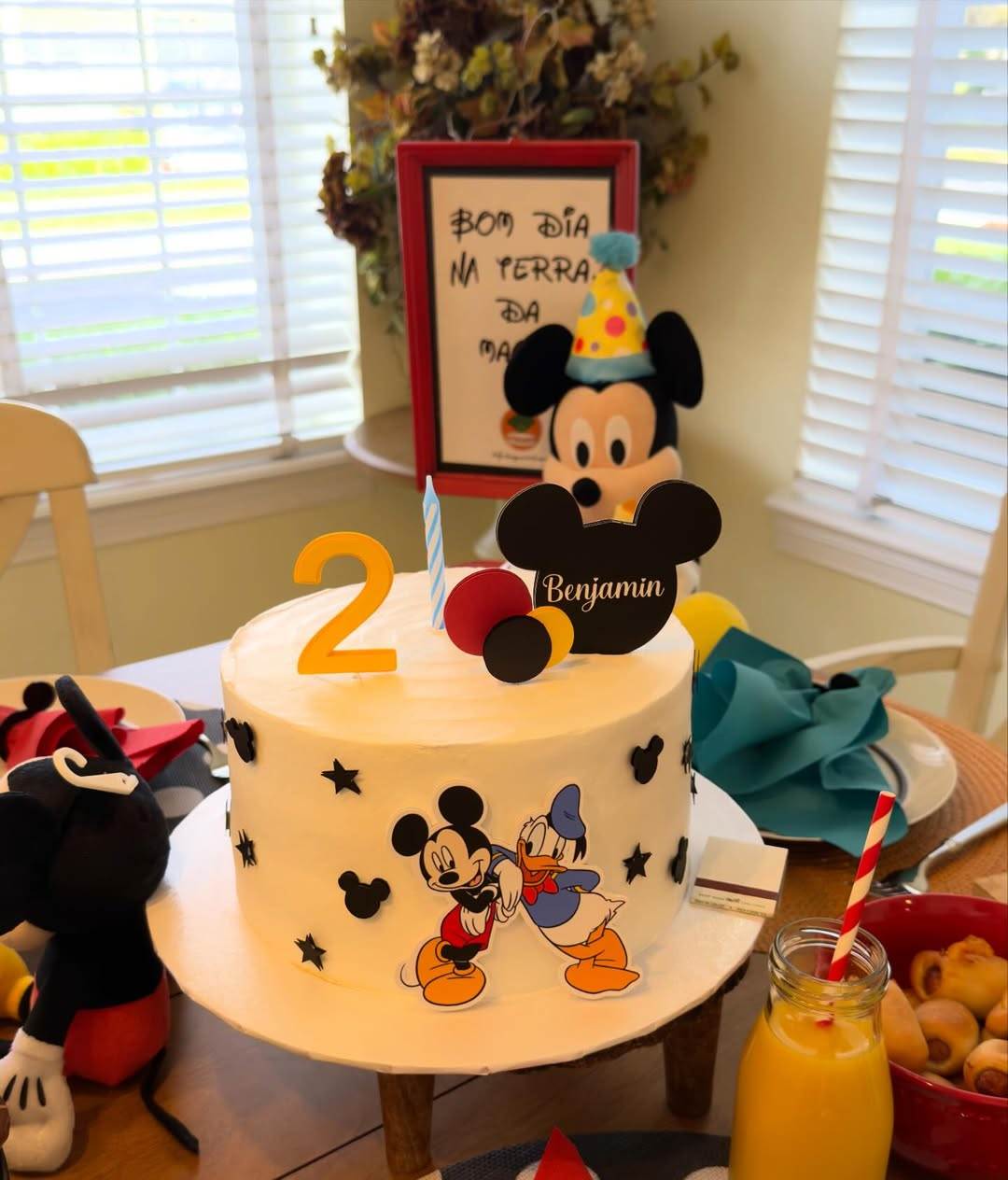 Nas redes sociais, eles mostraram o bolo de aniversário com o tema do Mickey para o herdeiro e também as fotos do dia especial.