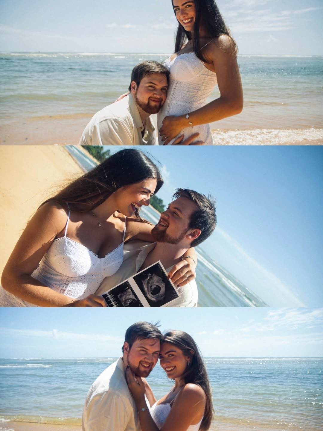 Para dar a notícia aos fãs, Luma compartilhou um ensaio fotográfico ao lado do marido, o inglês Ed Beccle, em uma praia enquanto seguravam a imagem do ultrassom da gestação. Na legenda, eles celebraram a novidade especial.