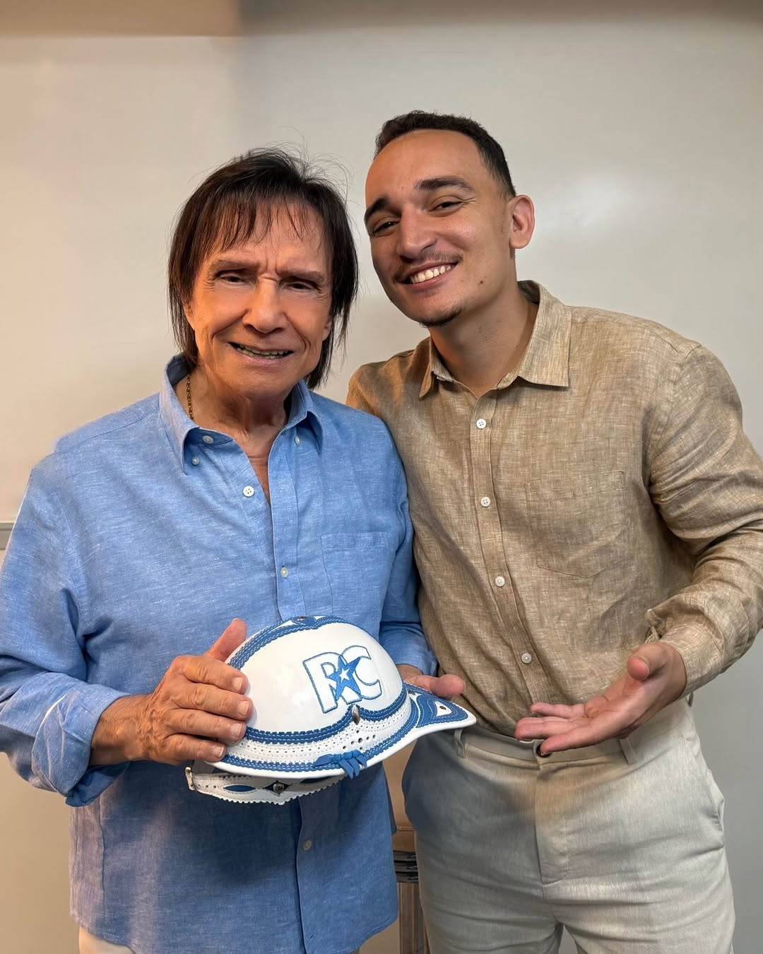 O detalhe que chamou ainda mais atenção foram as iniciais de Roberto Carlos meticulosamente bordadas, demonstrando o cuidado e a personalização do presente.