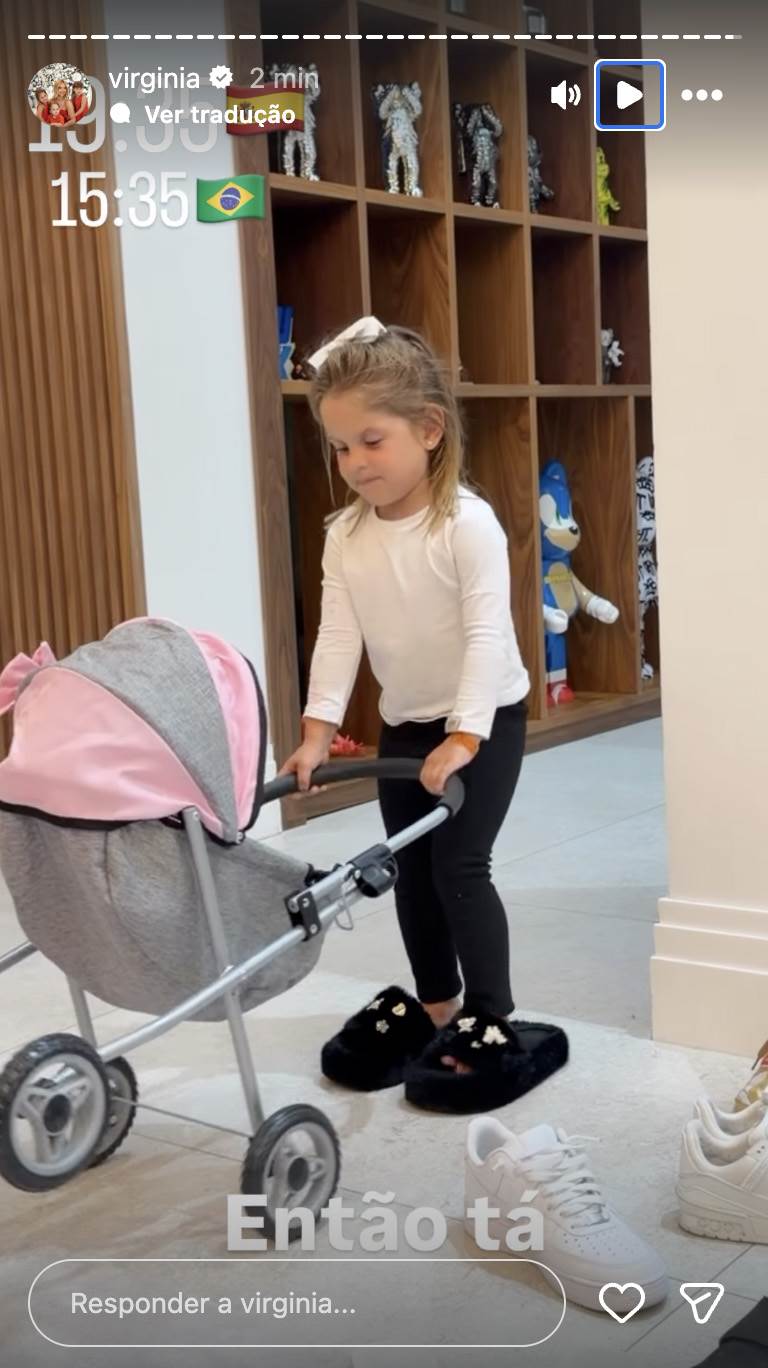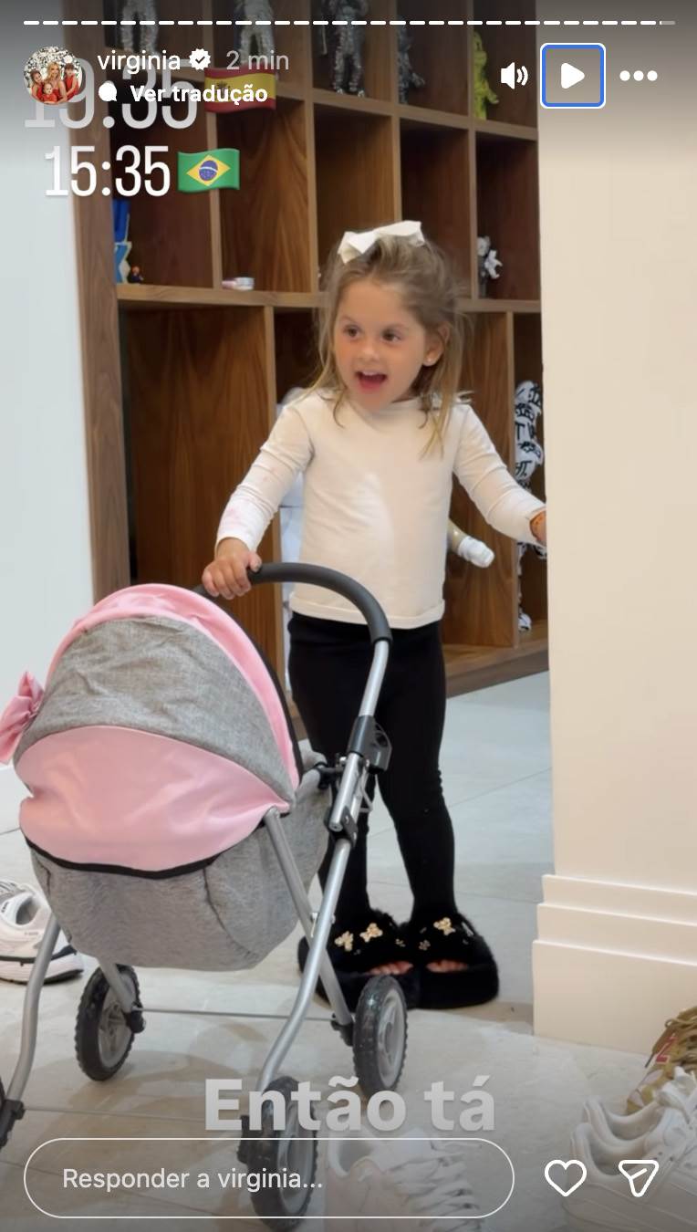 Filha de Virginia Fonseca e Zé Felipe, a pequena Maria Flor, de 3 anos, surgiu brincando com um presente que ganhou de Vini Jr, namorado da mãe dela. Nesta terça-feira, 30, a menina apareceu se divertindo com um dos presentes que ganhou do jogador quando esteve em Madrid, na Espanha, há dois meses.