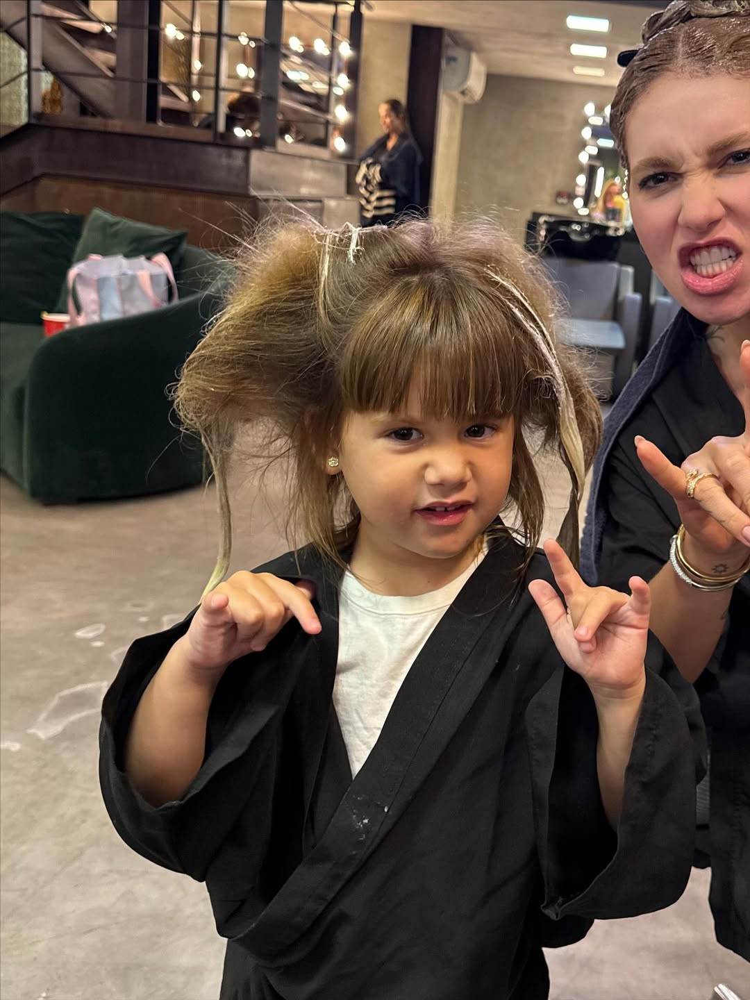 "E vocês acharam que só a mamãe mudou o cabelo?!! Nananinanão, elas também passaram umas horinhas no salão e fizemos dia das meninas", disse a apresentadora do SBT.
