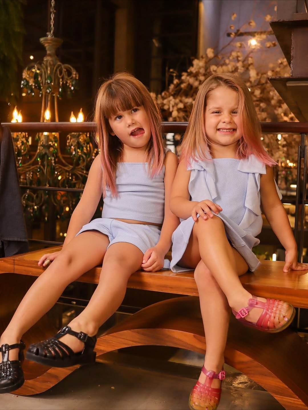Maria Alice e Maria Flor também quiseram mudar o cabelo e após a autorização da mamãe e do papai, o cantor sertanejo Zé Felipe, as duas fizeram mechas rosas.