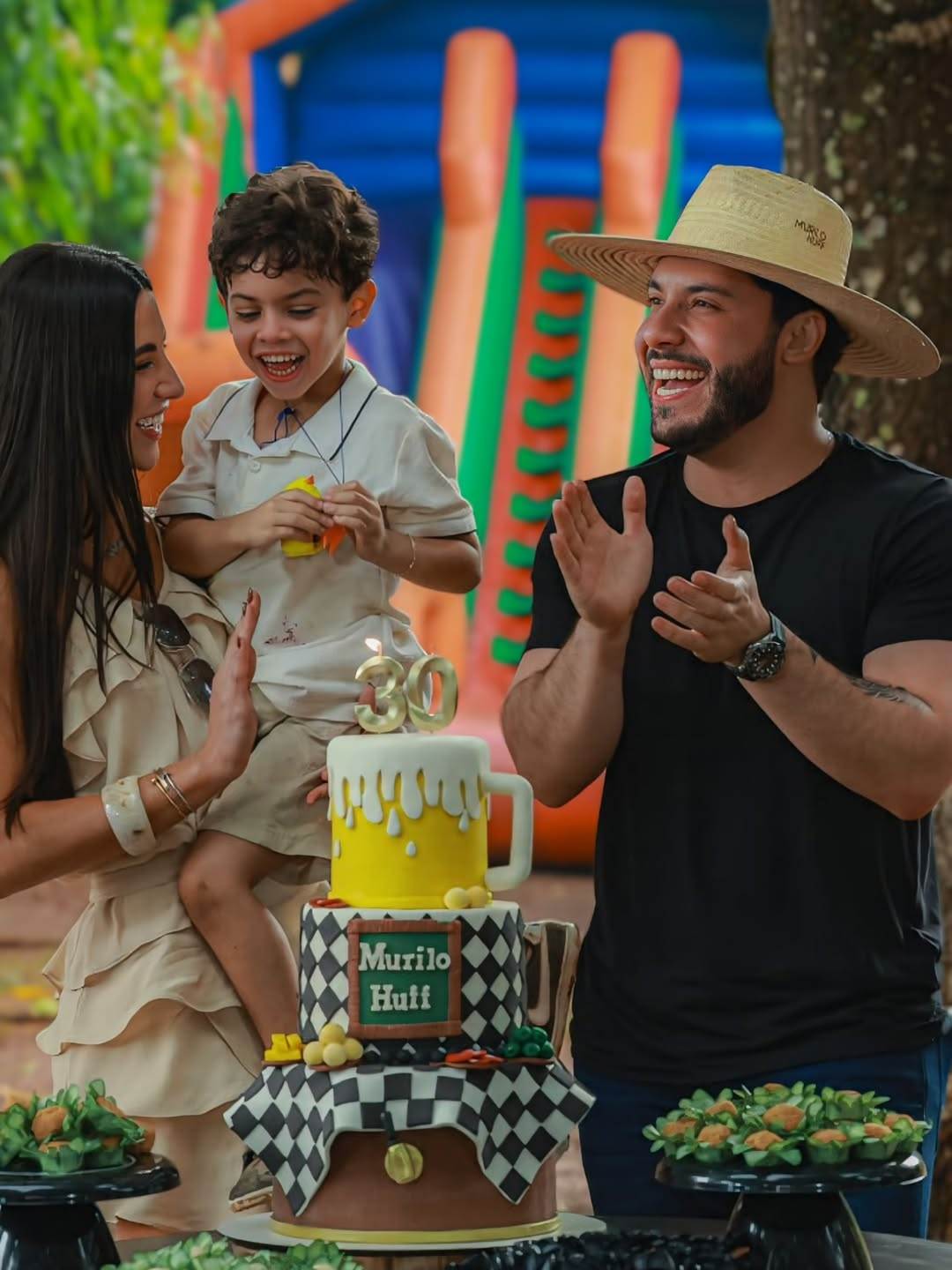 Murilo Huff celebrou a chegada dos 30 anos em grande estilo, com uma festa ao ar livre cercada de amigos, familiares e do filho Léo, de 5 anos, fruto de seu relacionamento com Marília Mendonça. O momento mais especial da comemoração foi registrado pela noiva do cantor, Gabriela Versiani, que publicou nas redes sociais o instante em que o pequeno ajudou o pai a soprar as velinhas do bolo.