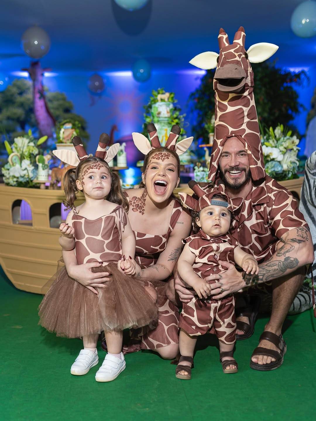 “A arca de Noé chegou nessa fazendinha e a família girafa veio correndo pra comemorar 1 ano do nosso guerreiro. Um dia todo na fazenda, cheio dos bichinhos, atividades, show, já está sendo uma tarde inesquecível”, contaram ao mostrarem as fotos da festa.