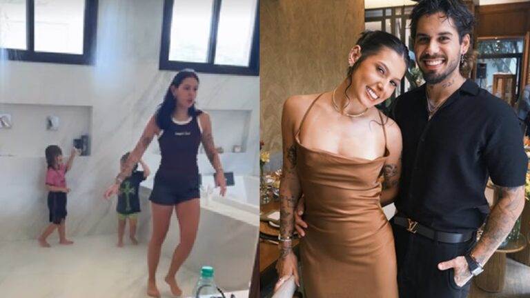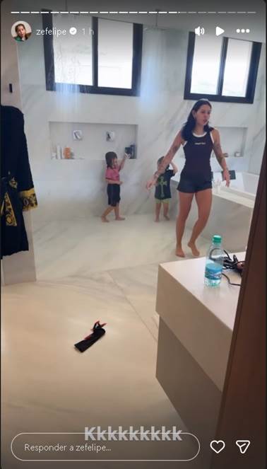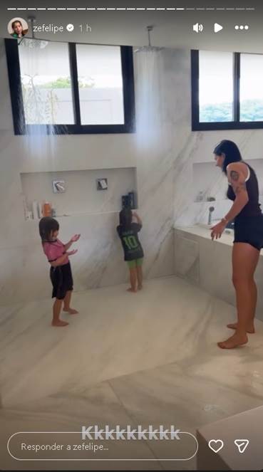 No vídeo publicado nas redes sociais, as três aparecem em clima de diversão, brincando de roupa no chuveiro com a água ligada. Além disso, ao compartilhar a cena, o sertanejo se divertiu com a situação e comentou: "A bagunça que ela faz com essas meninas".