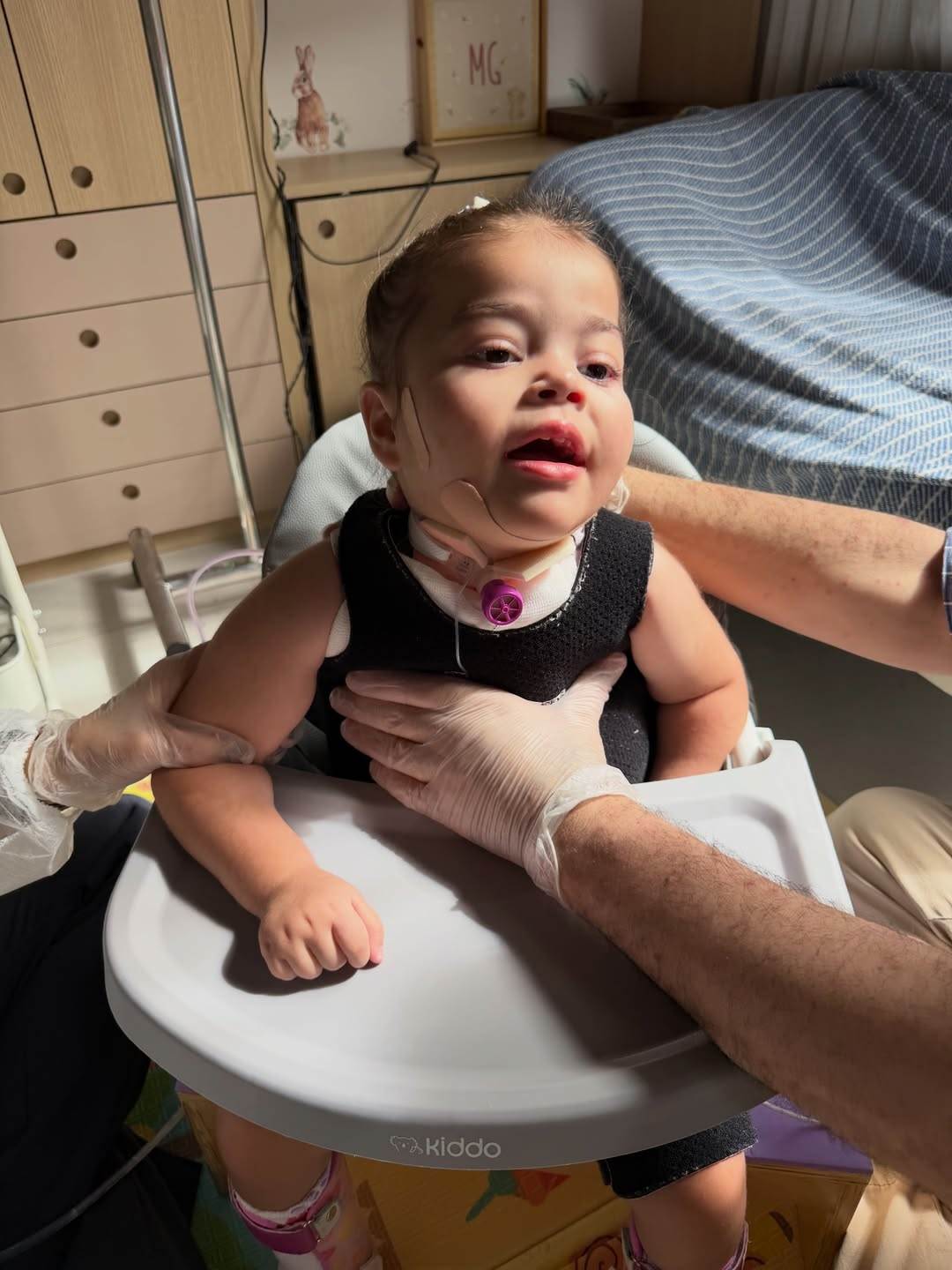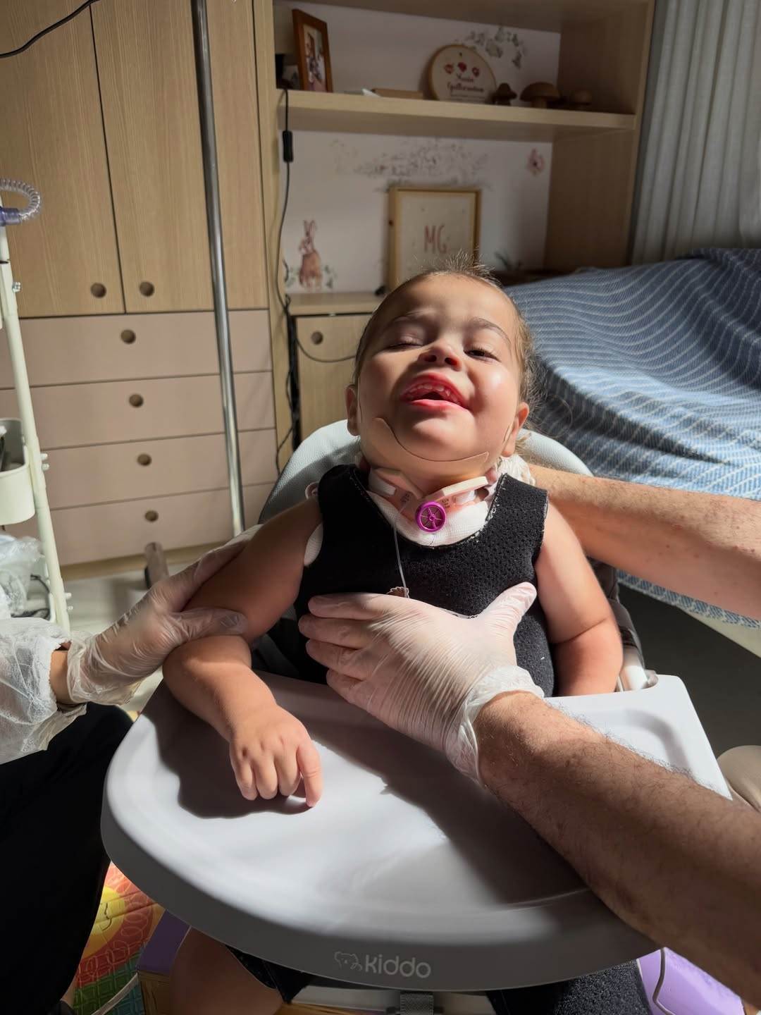 Vale lembrar que ela nasceu com uma cardiopatia congênita rara e faz uso de traqueostomia desde os primeiros dias de vida.