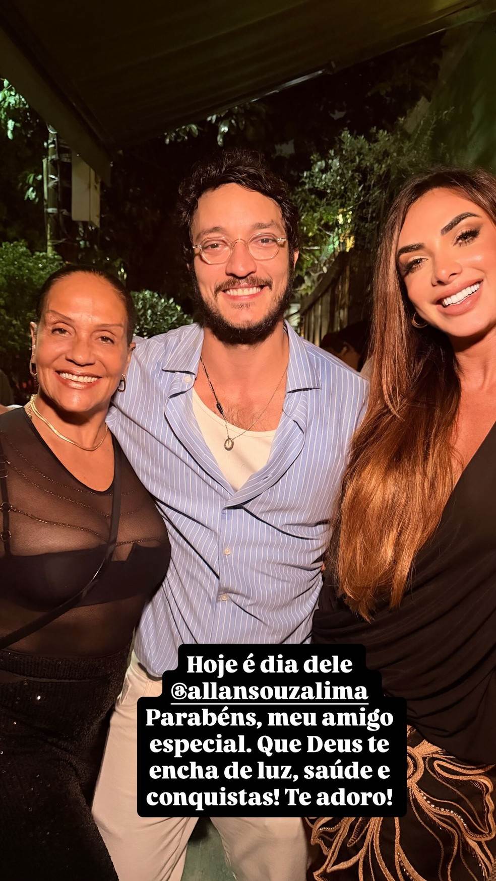 "Hoje é dia dele, Allan Souza Lima. Parabéns, meu amigo especial. Que Deus te encha de luz, saúde e conquistas Te adoro!", postou Nicole com uma foto com o aniversariante e a mãe dele, Anina Lima.