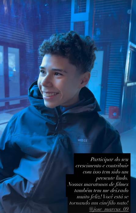 Na publicação, a atriz declarou: "Hoje é o dia dele, deste garoto que conheci ainda criança e que agora cresce mais rápido do que meus olhos podem acompanhar". E complementou: "É lindo ver você crescer e participar disso! Cada espaço que você me presenteia para ser parte da sua vida tem sido especial!"