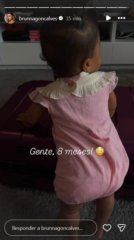 Brunna, que acompanha cada passo do crescimento da bebê, revelou aos seguidores que a herdeira aprendeu a ficar de pé sozinha.