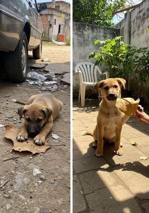 A visão era comovente. Para Zeus, talvez aquela folha representasse seu único brinquedo, ou talvez significasse tudo o que ele acreditava ter naquele momento de abandono. As condições de Zeus eram alarmantes: ele foi encontrado com hipotermia, sarna, vermes e infecção nos olhos, um quadro crítico que exigiu atenção imediata.