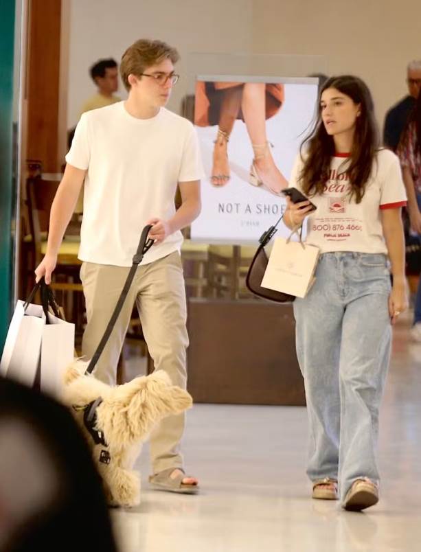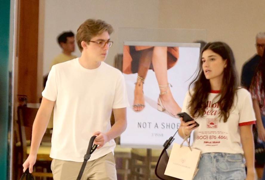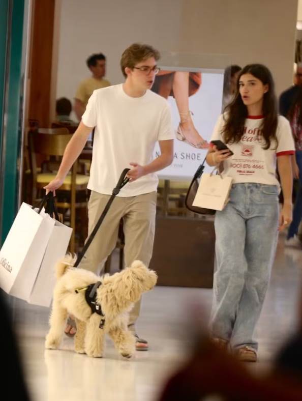 Joaquim Huck, de 20 anos, passeou por um shopping no Leblon neste sábado (20) com a namorada, Manoela Esteves. O casal, que está junto desde 2022, foi clicado em lojas de roupas na companhia do cãozinho do filho de Angélica, de 51, e Luciano Huck, de 54. Joaquim e Manoela conversaram e riram durante o passeio.
