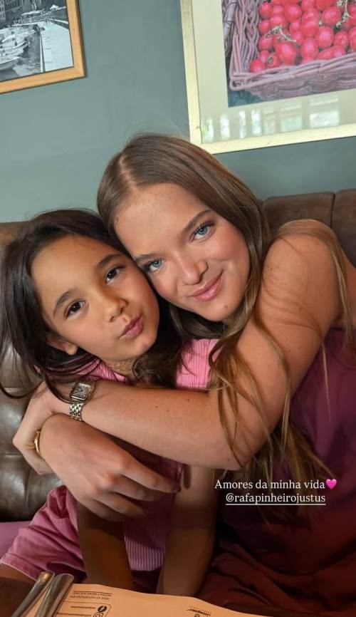 Nos Stories do Instagram, a apresentadora compartilhou uma foto em que a primogênita aparece agarradinha com a caçula e se derreteu: "Amores da minha vida", declarou a artista, acrescentando um emoji de coração.