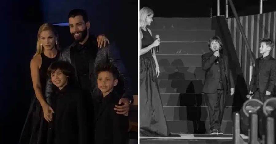 Quando Andressa Suita, modelo e esposa do cantor, subiu ao palco com um vestido longo preto, o corte elegante e destaca-se, fazendo jus ao ambiente sofisticado do espetáculo. Enquanto isso, Gabriel e Samuel, pequenos cavalheiros, desfilaram ternos alinhados com gravatas borboleta que deixariam qualquer ícone de moda com inveja.