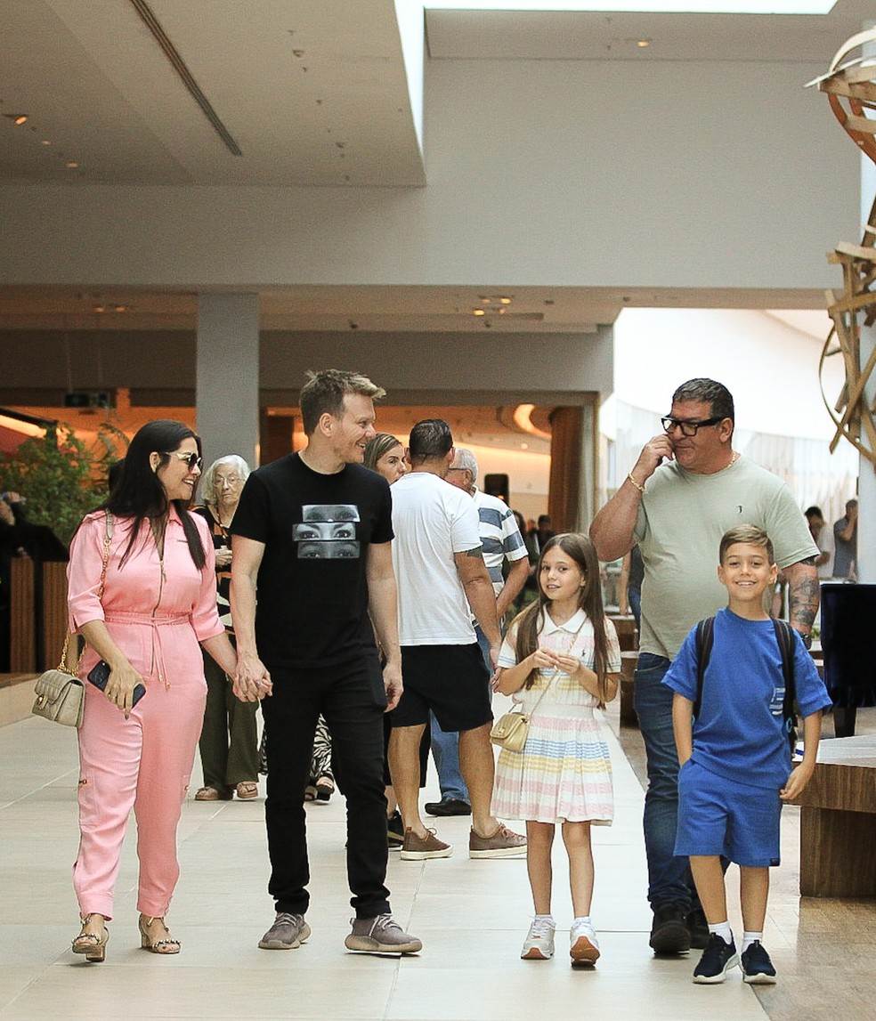 Michel Teló, de 45 anos, e Thais Fersoza, de 41, aproveitaram o dia para passar o domingo (8) em família. Os dois foram clicados esbanjando sorrisos ao passear com os filhos, Melinda, de 9 anos, e Teodoro, de 8, em um shopping na Barra da Tijuca, no Rio de Janeiro.