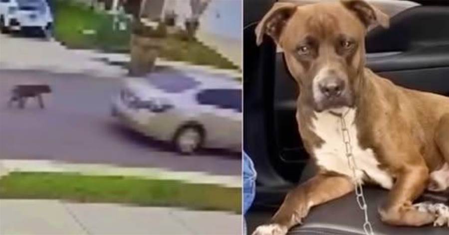 Para seu horror, as imagens mostraram um Nissan Altima prata circulando pela área, arrastando o cão acorrentado à traseira do veículo. As cenas angustiantes revelaram o cão correndo atrás do carro até que, felizmente, a corrente se rompeu, deixando-o exausto no meio da rua.