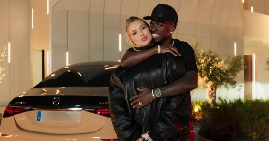 A primeira imagem da sequência chamou atenção por mostrar o jogador ao lado da namorada, Virginia Fonseca, em frente à mansão onde o atleta vive na Espanha.