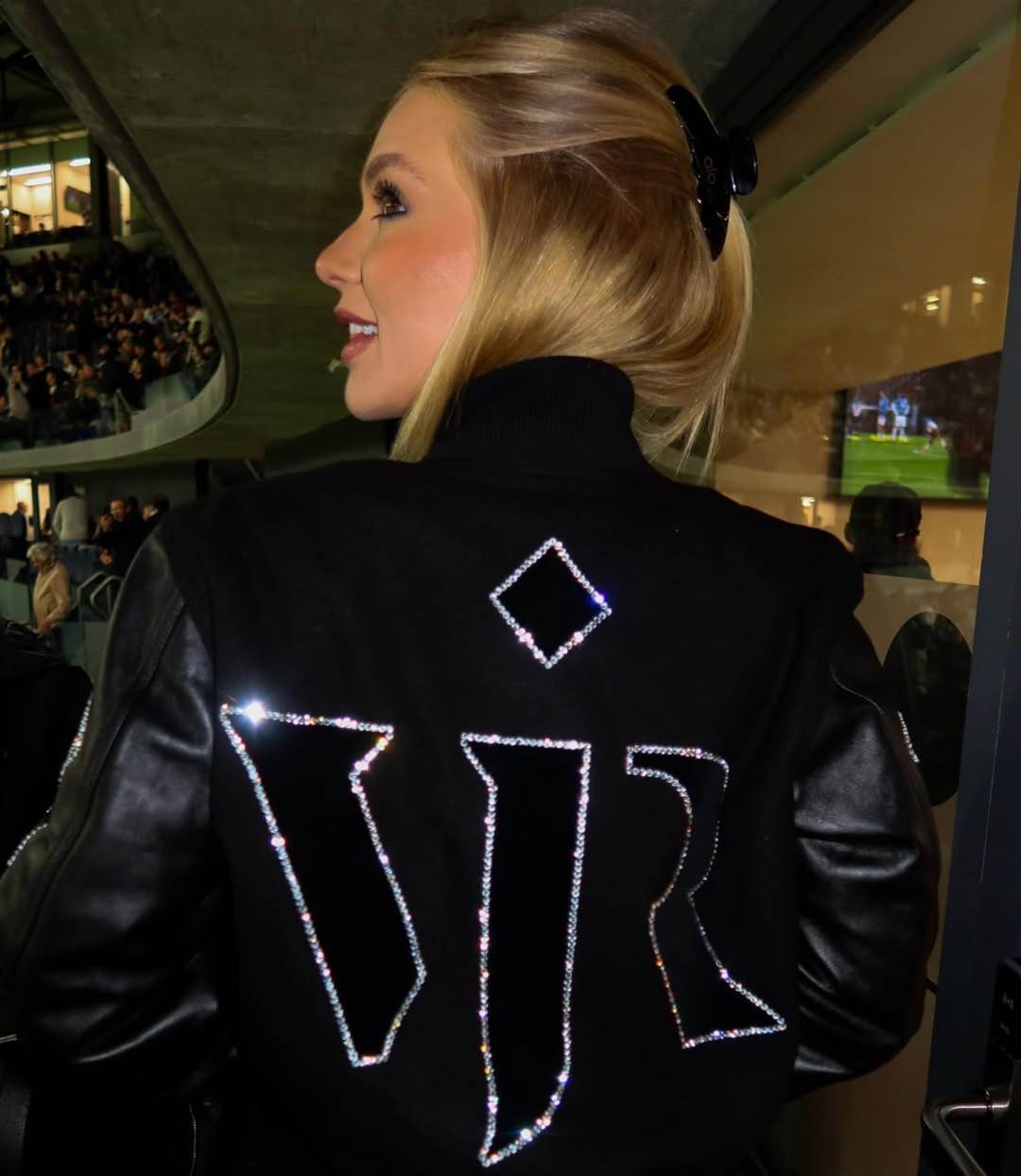 Nos cliques, Virginia aparece animada no Estádio Santiago Bernabéu, onde acompanhou mais um jogo do atacante brasileiro.