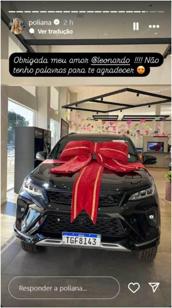 O investimento mais robusto da família foi revelado em junho de 2025, quando o cantor presenteou sua esposa, Poliana Rocha, com um Toyota SW4 na cor preta. O modelo é um dos utilitários mais cobiçados da categoria, com preço de tabela que atinge os R$ 465 mil.