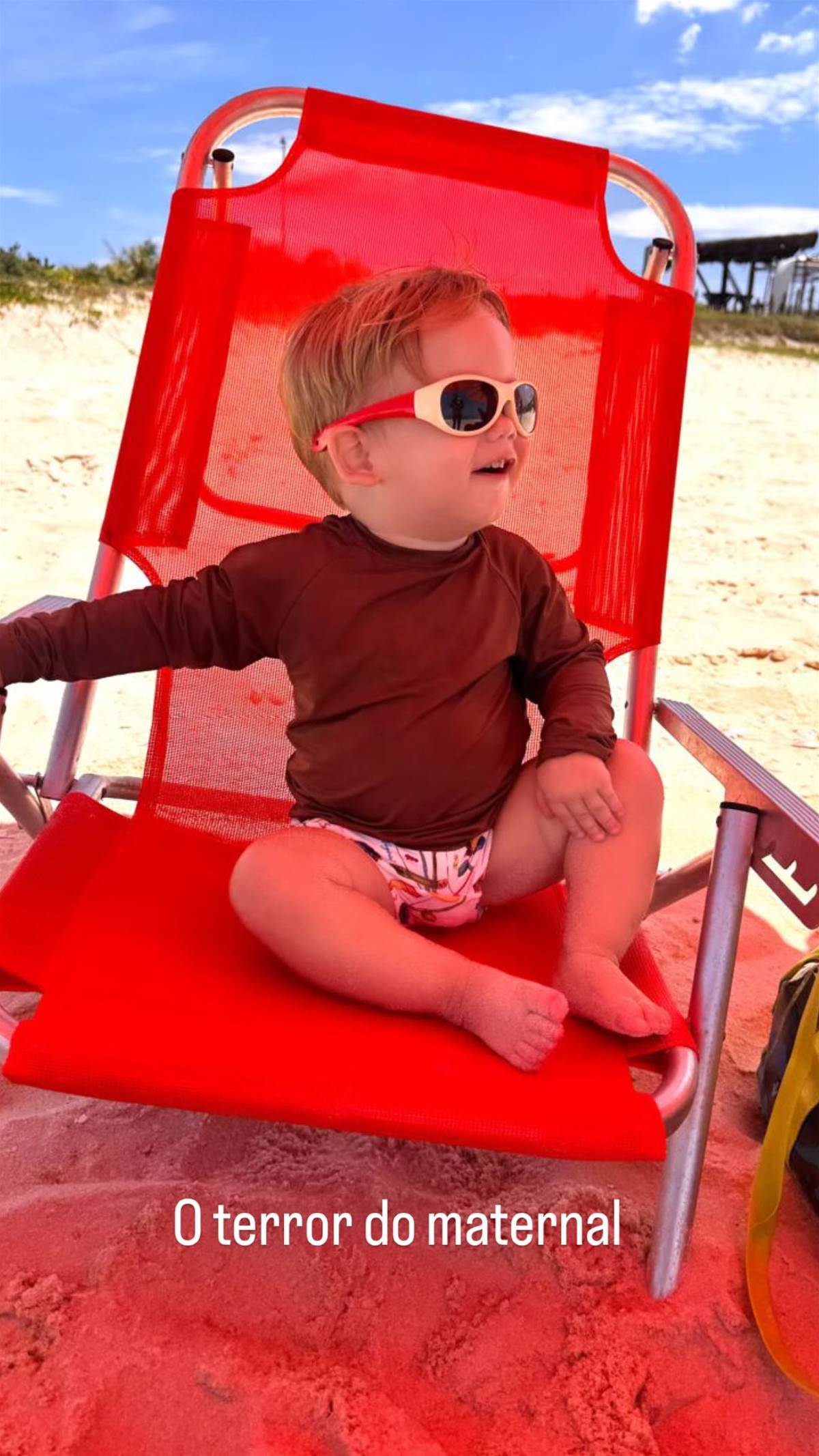 de apenas 1 ano, passaram o dia à beira-mar ao lado da avó materna, Margareth Serrão. Entre mergulhos, brincadeiras na areia e muito sol, os pequenos ainda reservaram um tempo para "matar a saudade" do pai, que apareceu todo orgulhoso na tela do celular.